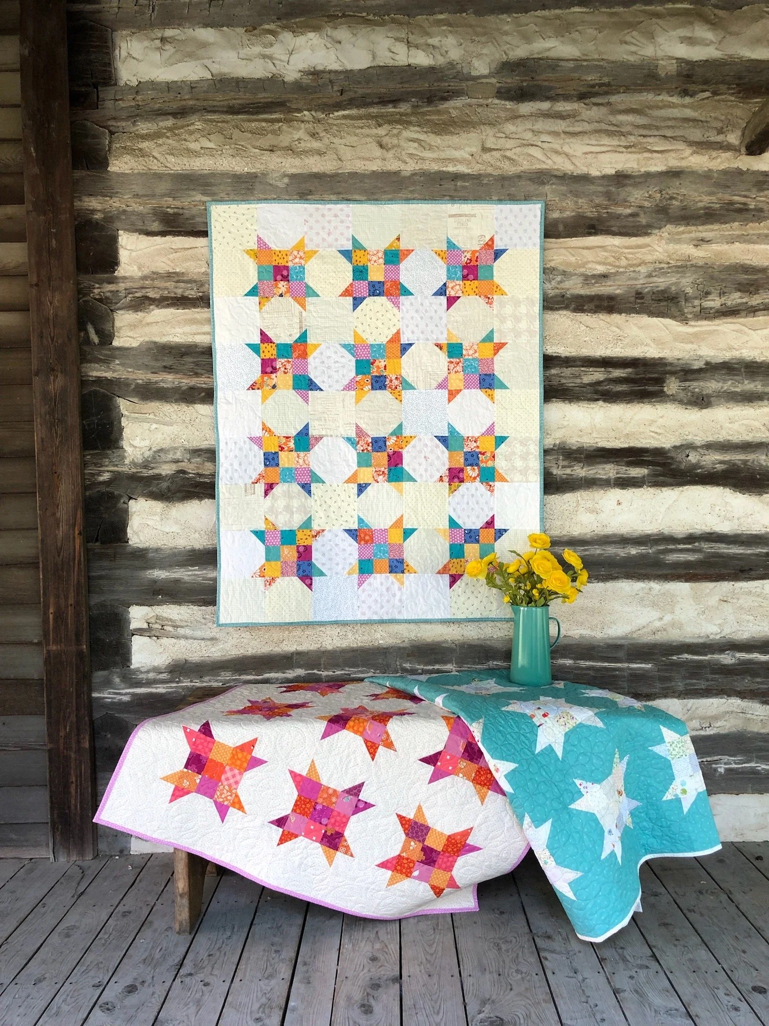 The variety of designs will make you want to make more. When you start playing with the Scrappy Triangles, you'll discover that there are endless designs you can make. You can use the small blocks in a quilt, wall hanging, bag, or more!
